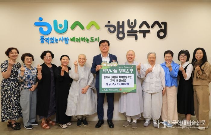 한국현대미술신문 정소영 기자 | 대구 수성구는 지난 19일 용지사(세음사회적협동조합) 주지 동건스님과 신도들이 재난 피해 주민들을 위해 써달라며 성금 276만 원을 전달했다고 밝혔다.