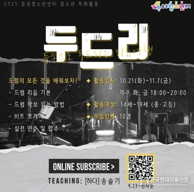 한국현대미술신문 신정은 기자 | 음성청소년센터는 청소년 특화활동 ‘두.드.리’를 운영한다고 22일 밝혔다.