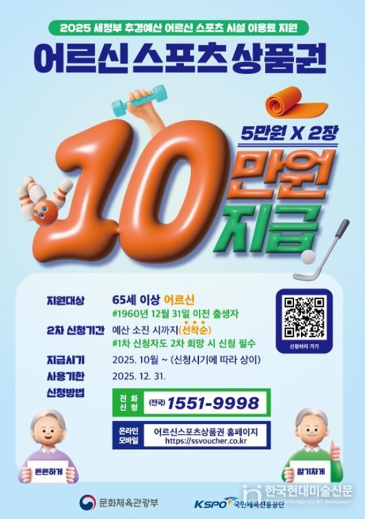 한국현대미술신문 신정은 기자 | 옥천군이 문화체육관광부가 후원하는 ‘어르신 스포츠 상품권’ 지원 대상을 기존 기초연금 수급 어르신에서 65세 이상인 모든 어르신으로 확대 시행한다.