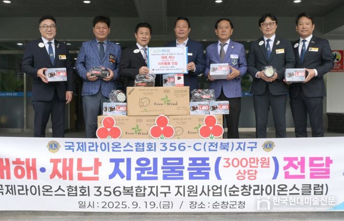 한국현대미술신문 기자 | 국제라이온스협회 356-C(전북)지구는 최근 순창라이온스클럽으로부터 기탁받은 재해구호물품 100세트를 순창군에 전달했다.