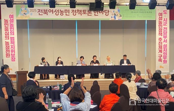 한국현대미술신문 기자 | 전북특별자치도는 9월 22일 오후 2시 부안 해나루 가족호텔에서 '2025 전북여성농민 정책토론 한마당'을 개최했다고 밝혔다. 이번 토론회에는 여성농업인 150여 명이 참석해 여성농업인의 지위와 역할을 제도적으로 보장하기 위한 다양한 방안을 논의하며 현장의 목소리를 적극 전달하는 자리가 됐다.