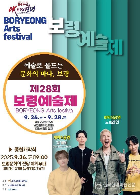 한국현대미술신문 신정은 기자 | 한국예술문화단체총연합회 보령지회는 제28회 보령예술제를 9월 26일부터 28일까지 3일간 개최한다. ‘예술로 물드는 문화의 바다, 보령!’이라는 슬로건으로 보령 문화예술의 르네상스를 열기 위해 보령문화의전당, 대천역 광장 특설무대, 보령문화예술회관에서 진행된다.