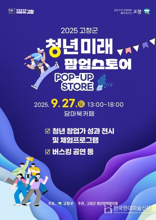 한국현대미술신문 기자 | 고창군은 오는 9월27일 오후 1시부터 담마북카페에서 2025 청년의 날 기념행사 ‘청년미래 팝업스토어’를 연다.