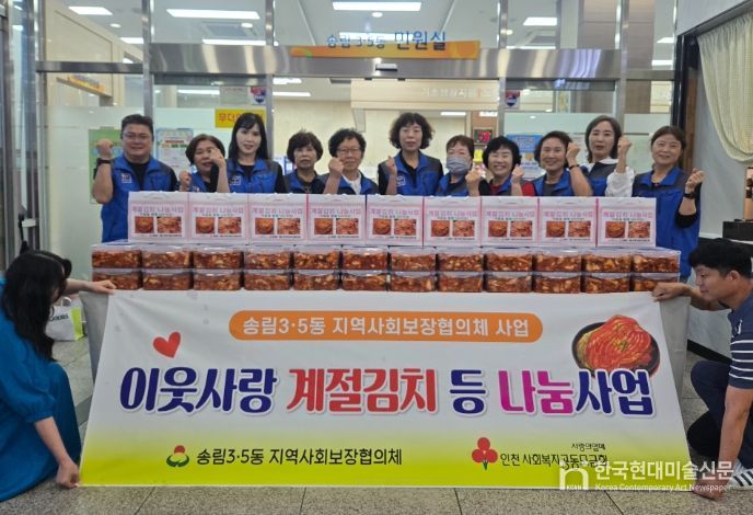 한국현대미술신문 박재남 기자 | 인천 동구 송림3・5동 지역사회보장협의체(민간위원장 정순자)는 지난 19일 지역 내 취약계층 60세대에 대한 ‘이웃사랑 계절김치 나눔사업’을 진행하였다고 밝혔다.