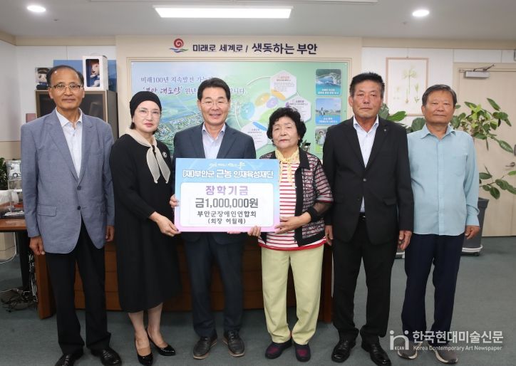 한국현대미술신문 기자 | 부안군근농인재육성재단은 지난 22일 부안군장애인연합회(회장 허월례)에서 지역인재 육성을 위한 장학금 100만원을 기탁했다고 밝혔다.