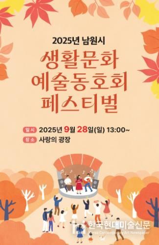 한국현대미술신문 기자 | 남원시가 후원하는 2025 남원시 생활문화예술동호회 페스티벌이 9월 28일에 남원 사랑의 광장에서 개최한다.