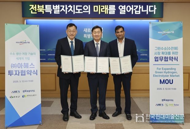 한국현대미술신문 기자 | 전북특별자치도는 완주 테크노밸리 2산단 소재 수소전문기업 ㈜아헤스(대표 이중희)가 인도 신재생에너지업체 GH2 Solar Ltd.와 수출 협력을 본격 추진한다고 23일 밝혔다.