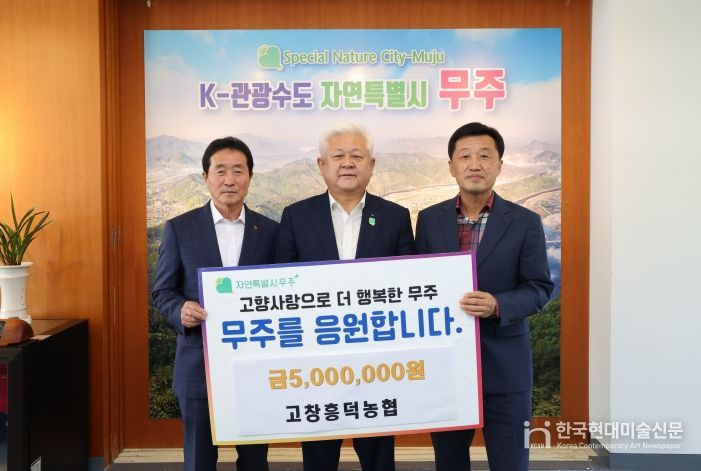 한국현대미술신문 기자 | 전북특별자치도 고창흥덕농협 임직원들이 지난 23일 무주군에 고향사랑 기부금 5백만 원을 기탁했다.