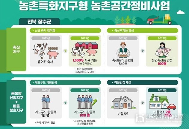 한국현대미술신문 기자 | 장수군이 농림축산식품부가 주관하는 ‘2025년 특화지구형 농촌공간정비사업’ 2차 공모에 최종 선정됐다고 23일 밝혔다.