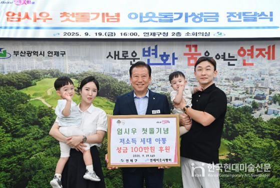 한국현대미술신문 정소영 기자 | 연제구는 9월 19일 첫돌아기 엄시우로부터 저소득 아동을 위한 성금 100만 원을 전달받았다.