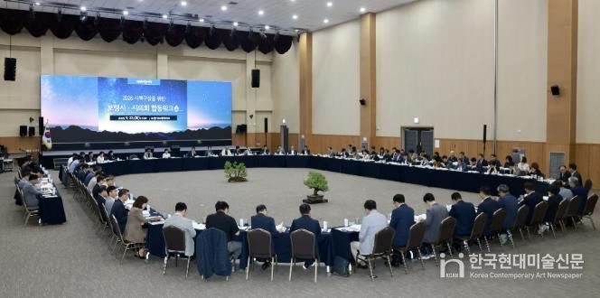 한국현대미술신문 신정은 기자 | 보령시는 지난 23일 보령머드테마파크에서 김동일 보령시장과 최은순 보령시의회 의장, 본청 및 직속기관 실·과장, 읍·면·동장 등 100여 명이 참석한 가운데 ‘2026년도 시책 발굴을 위한 합동 워크숍’을 개최했다.