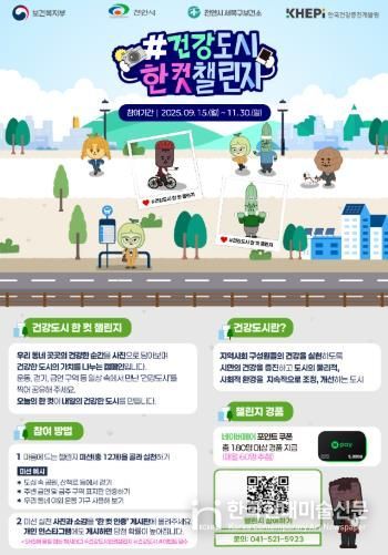 도심 속 산책로, 금연·금주 구역, 공공체육시설, 공공도서관 등 일상에서 만날 수 있는 다양한 건강도시 환경을 사진으로 인증하면 된다.