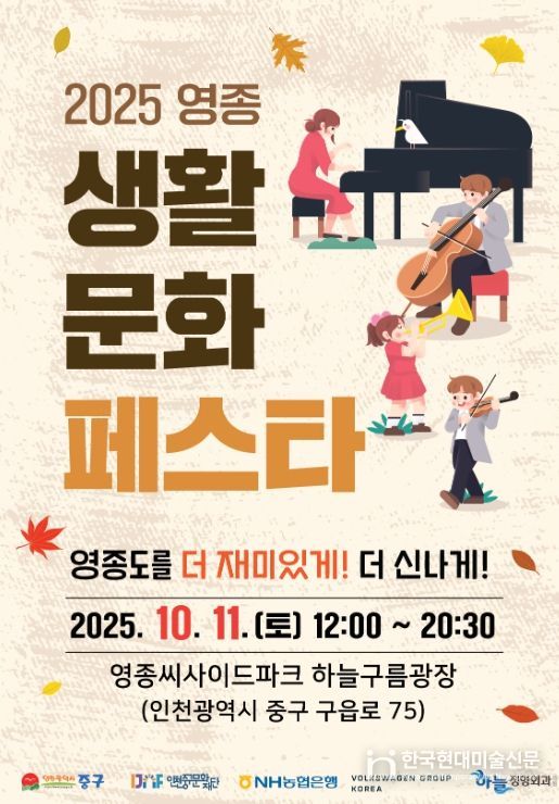 한국현대미술신문 박재남 기자 | (재)인천중구문화재단은 오는 10월 11일 영종씨사이드파크 하늘구름광장(인천 중구 구읍로 75)에서 ‘2025 영종 생활문화 페스타’를 개최한다고 밝혔다.