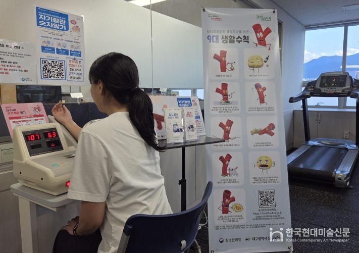 한국현대미술신문 정소영 기자 | 대구 남구는 생활에 밀접한 공간인 헬스장과 연계해 지역 주민들이 스스로 혈관 건강 상태를 점검하고 관리할 수 있도록 관내 헬스장에 심뇌혈관질환예방・관리 홍보 공간을 조성했다고 밝혔다.