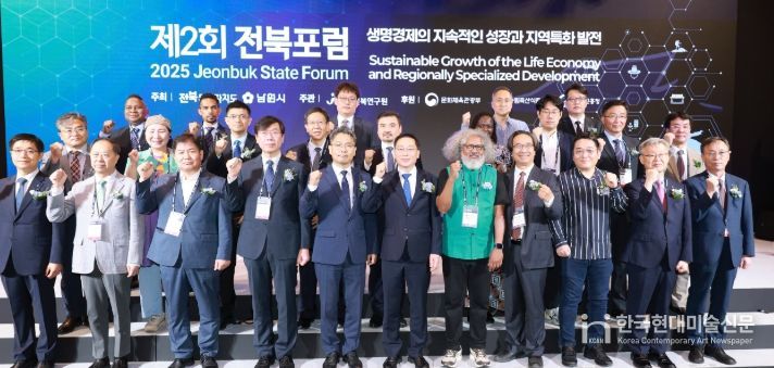 한국현대미술신문 기자 | 생명경제 비전 실현을 위한 글로벌 협력의 장인 제2회 ‘전북포럼’이 24일 남원 스위트호텔에서 성황리에 개최됐다. 이번 포럼을 통해 전북은 국제사회와의 연대를 강화하고, 농생명·문화관광 산업을 중심으로 한 지역 특화 발전 전략을 국내외에 공유하며 생명경제도시로의 도약 기반을 다졌다.