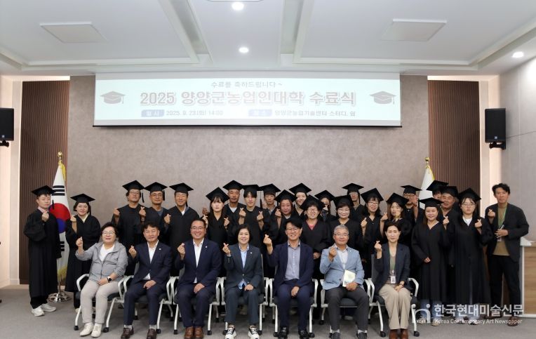 한국현대미술신문 원진 기자 | 양양군은 지난 9월 23일, 양양군농업기술센터(스터디, 쉼)에서‘농업경영마케팅전문가’양성을 목표로 운영된 제17기 농업인대학 수료식을 성공적으로 마무리하고 총 26명의 전문 농업인을 배출했다.
