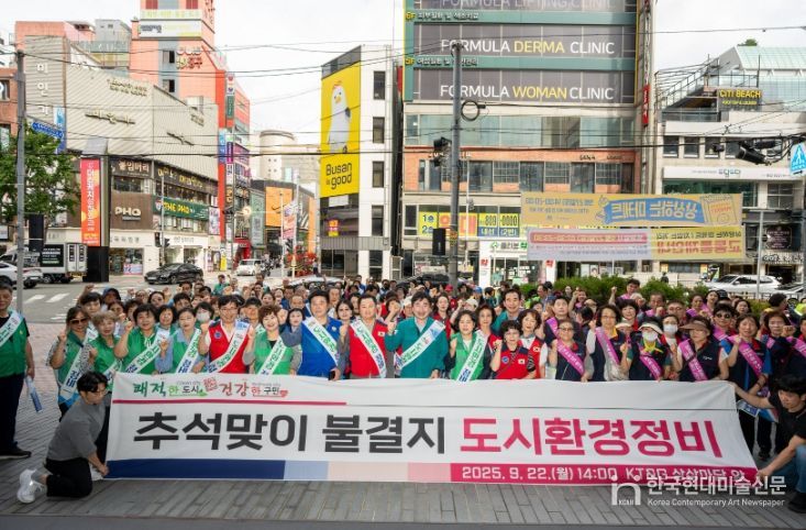한국현대미술신문 정소영 기자 | 부산진구는 지난 22일 서면1번가 일원에서 공무원, 새마을회·바르게살기협의회·한국자유총연맹 유관단체와 주민 등 약 150명이 참여한 가운데 추석맞이 도시환경정비 행사를 가졌다고 밝혔다.