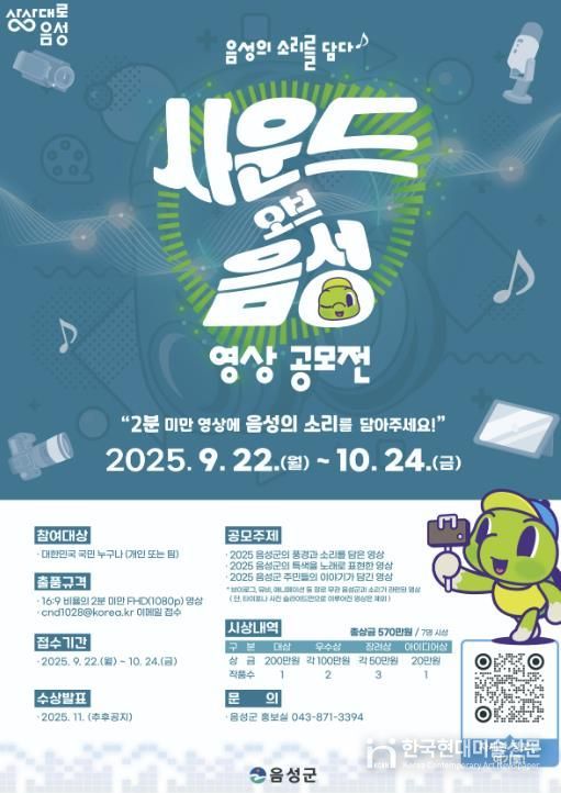 한국현대미술신문 신정은 기자 | 음성군은 오는 10월 24일까지 2025 사운드 오브 음성 영상 공모전을 개최한다고 밝혔다.