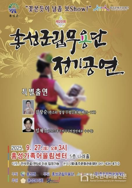한국현대미술신문 신정은 기자 | 홍주문화관광재단은 오는 27일 오후 3시 홍성가족어울림센터에서 홍성군립무용단 제20회 정기공연 ‘꽃 본 듯이 날 좀 보show’를 개최한다고 밝혔다.