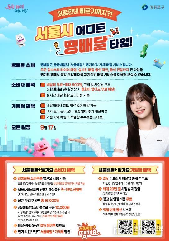 최호권 영등포구청장은 "'땡배달'은 소상공인과 소비자 모두의 비용 부담을 해소하고, 지역 경제에 활력을 불어넣는 착한 배달 서비스”라며 “영등포 구석구석을 누비며 행복을 전하는 한 끼 친구로 자리 잡길 기대한다”라고 전했다.