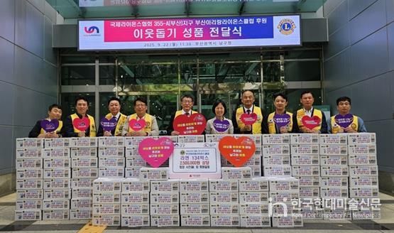 한국현대미술신문 정소영 기자 | 부산아리랑라이온스클럽은 지난 22일 부산 남구에 관내 저소득층을 위해 라면 134박스를 전달했다.