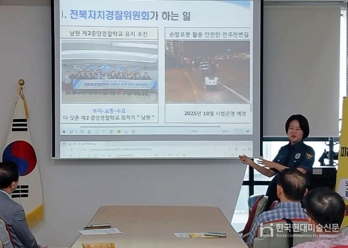한국현대미술신문 기자 | 전북특별자치도 자치경찰위원회는 25일 대한노인회 전북취업지원센터에서 금융취약계층을 대상으로 한 ‘전화금용사기 및 피해 예방교육’을 실시했다고 밝혔다.