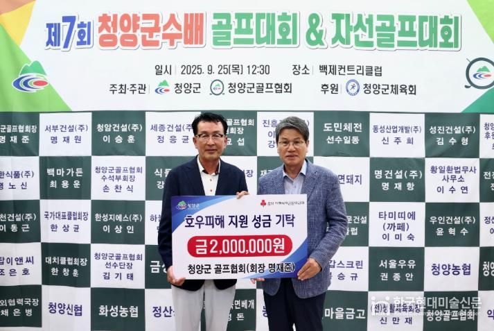 협회는 지난 25일 부여 백제 컨트리클럽에서 열린 제7회 청양군수배 골프대회를 맞아, 관내 호우피해를 입은 저소득 가구 지원을 위해 성금 200만원을 기탁했다.