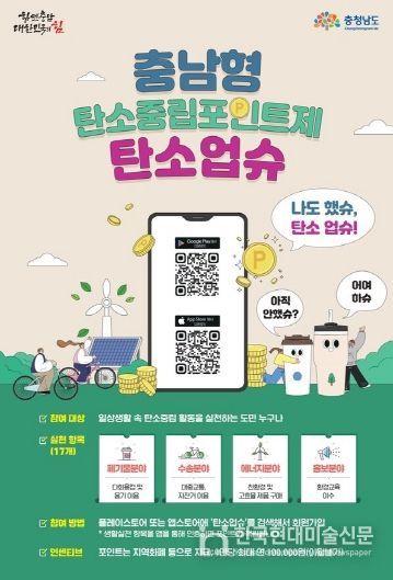 ‘탄소업슈’는 충청남도 전역에서 탄소중립 실현을 위해 추진 중인 사업으로, ▲폐기물 ▲수송 ▲에너지 ▲홍보 등 4개 분야 17개 항목으로 운영된다.