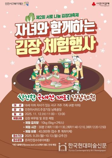 한국현대미술신문 박재남 기자 | 인천 서구가 11월 12일 인천아시아드주경기장 남측광장에서 제2회 서로 나눔 김장 대축제를 개최한다.