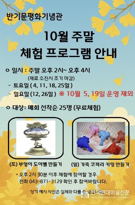 한국현대미술신문 신정은 기자 | 음성군 제8대 유엔사무총장 반기문 평화기념관에서는 관람객을 위해 10월 주말 무료 체험 프로그램을 운영한다.