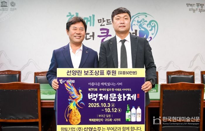 박정현 부여군수는 “지역 기업의 참여와 후원이 백제문화제를 더욱 친근하고 따뜻한 축제로 만드는 원동력이 된다.”라며 “선양소주의 후원에 깊이 감사드린다.”라고 전했다.