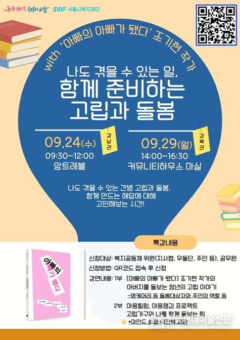 한국현대미술신문 배건 기자 | 서울시복지재단 내 고립예방센터는 지역사회보장협의체 위원의 역량 강화를 위해 '나도 겪을 수 있는 일, 함께 준비하는 고립과 돌봄 특강'을 29일 커뮤니티하우스 마실(중구 명동)에서 개최한다고 밝혔다.