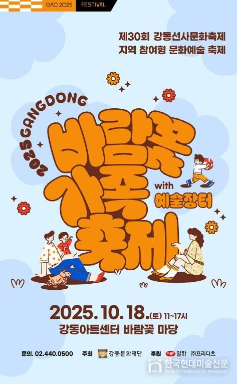 한국현대미술신문 배건 기자 | 강동문화재단은 오는 10월 18일 오전 11시부터 오후 5시까지, 강동아트센터 바람꽃마당에서 '2025 강동 바람꽃 가족 축제 · 예술장터'를 개최한다고 밝혔다.