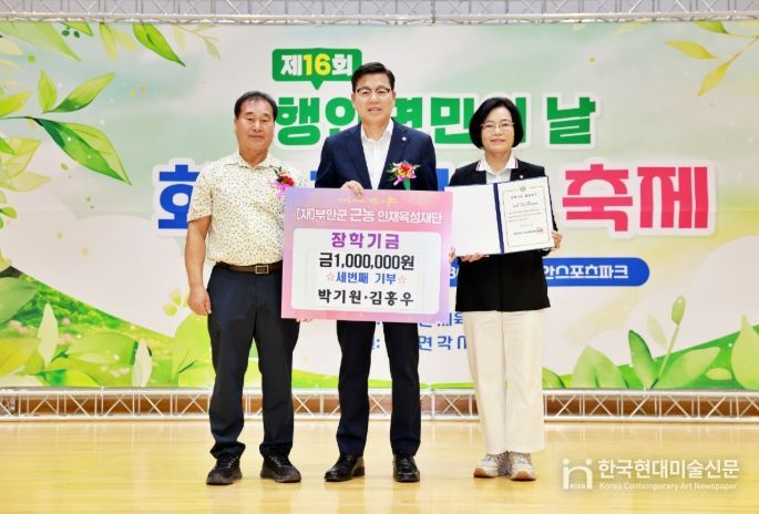 한국현대미술신문 기자 | 지난 9월 26일 부안군 스포츠파크 실내체육관에서 열린 제16회 행안면민의 날 화합한마당 축제에서 지역 인재 육성을 위한 뜻깊은 나눔이 이어졌다.