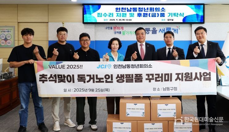 한국현대미술신문 박재남 기자 | 인천시 남동구는 인천남동청년회의소(회장 정수환)로부터 취약계층 지원을 위한 500만 원 상당의 후원금과 및 생필품 꾸러미 등을 기탁받았다고 29일 전했다.