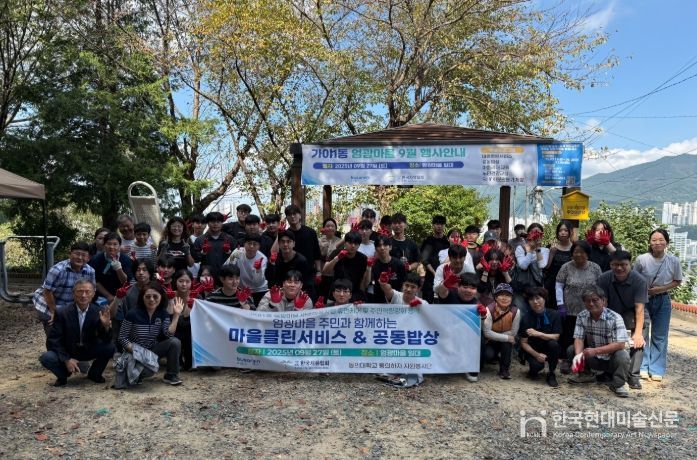 한국현대미술신문 정소영 기자 | 부산진구 가야1동 엄광마을 주민협의회(회장 정성호)는 새뜰마을사업의 일환으로 동의대학교 교수와 학생들로 구성된 자원봉사동아리 ‘동의하자팀’과 합동으로 9월 27일 마을 환경정비 활동을 펼쳤다.