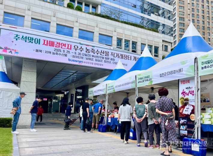 한국현대미술신문 정소영 기자 | 부산진구청이 주최하는 ‘추석맞이 농축수산물 직거래장터’가 9월 29일부터 9월 30일까지 부산진구 정문광장에서 열리고 있다.