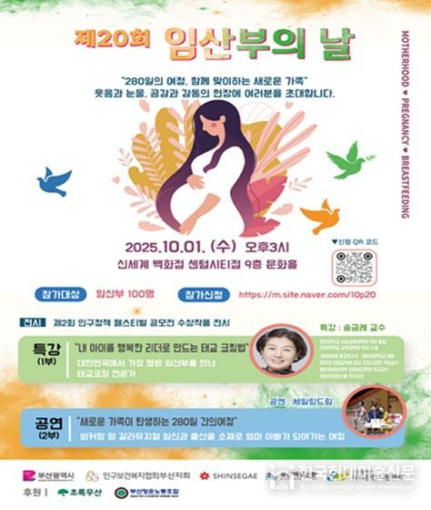 한국현대미술신문 정소영 기자 | 부산시는 내일(10월 1일) 오후 3시 신세계백화점 센텀시티점 9층 문화홀에서 '제20회 임산부의 날 기념행사'를 개최한다고 밝혔다.