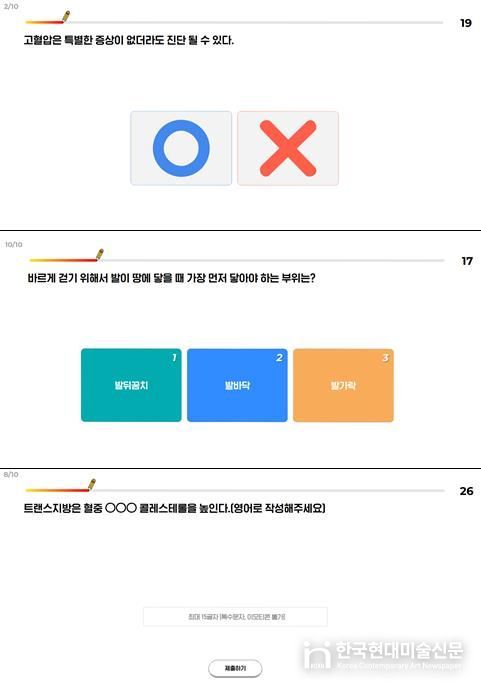 참가자들은 모바일과 PC로 퀴즈쇼 URL 링크에 접속하여 심뇌혈관질환 예방, 금연, 건강한 식습관, 바르게 걷기, 치아 관리 등 만성질환을 조기에 예방할 수 있는 다채로운 건강 퀴즈를 풀며 재미와 유익함을 동시에 경험했다.