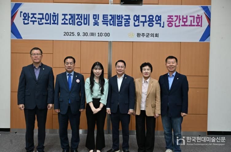 한국현대미술신문 기자 | 완주군의회 조례정비·특례 발굴 연구회는 30일 군의회 문화강좌실에서 '완주군 조례정비 및 특례발굴 연구용역' 중간보고회를 열고 연구 진행 상황과 주요 성과를 점검했다.