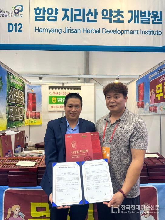 한국현대미술신문 신정은 기자 | 경남 함양농협에서 운영하는 지리산약초개발원이 2025제천국제한방천연물산업엑스포에서 해외 기업과 연달아 수출협약을 체결하며 주목받고 있다.