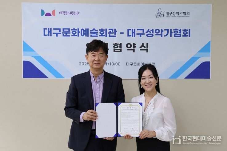 한국현대미술신문 정소영 기자 | (재)대구문화예술진흥원 대구문화예술회관은 대구성악가협회(회장 류진교)와 업무협약(MOU)을 체결하고, 지역 성악가의 성장 지원과 안정적인 활동 기반 마련을 위해 협력하기로 했다.