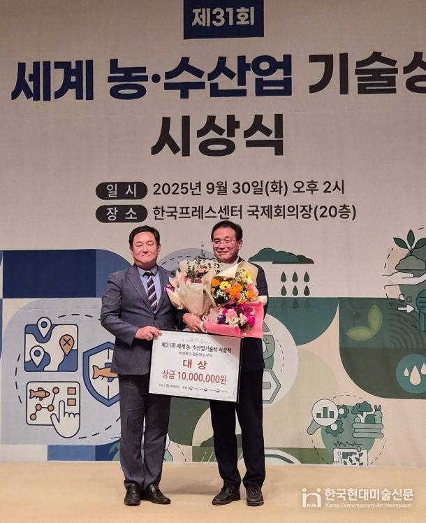 한국현대미술신문 신정은 기자 | 청주시는 상당구 미원면에 위치한 동청주살림영농조합법인의 김희상 대표가 30일 서울 한국프레스센터에서 열린 ‘제31회 세계농·수산업기술상’ 시상식에서 협동영농 부문 대상(大賞)을 수상했다고 밝혔다.