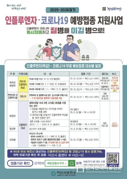 한국현대미술신문 신정은 기자 | 아산시는 10월 15일부터 내년 4월 30일까지 고위험군을 대상으로 무료 코로나19 예방접종을 시행한다.