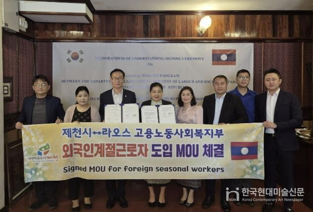 한국현대미술신문 신정은 기자 | 제천시는 지난 9월 30일 라오스 노동사회복지부와 외국인 계절근로자 도입을 위한 신규 업무협약(MOU) 을 체결했다. 이번 협약은 농번기 원활한 인력 공급을 위해 추진된 것으로, 특히 농촌 인력 공급 국가를 다변화해 불확실성을 최소화하는 데 목적이 있다.
