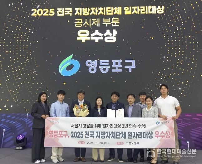 한국현대미술신문 배건 기자 | 영등포구가 고용노동부 주관 ‘2025 전국 지방자치단체 일자리 대상’에서 ‘우수상’을 차지했다고 밝혔다. 지난해에 이어 2년 연속 수상으로, 지역 고용정책을 선도하는 자치구로서의 위상을 공고히 했다.
