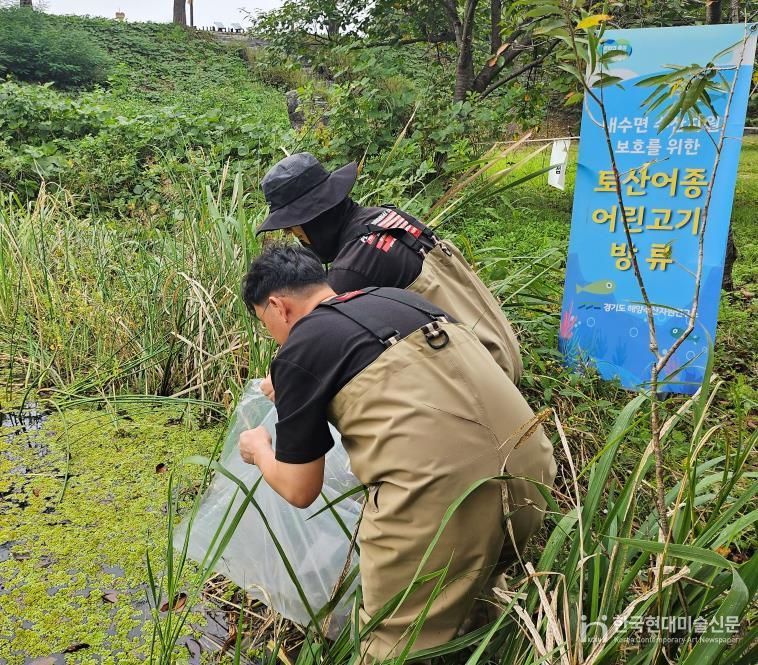 한국현대미술신문 배윤섭 기자 | 경기도해양수산자원연구소가 토종 민물고기 종 보존과 하천 생태계 복원을 위해 경기도 보호 어종인 버들붕어 치어 1천 마리를 9월 30일 광주시 경안천습지생태공원에 방류했다.