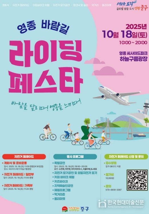 한국현대미술신문 박재남 기자 | 인천시 중구는 축제의 계절 가을을 맞아 오는 18일 영종 씨사이드파크 일원에서 ‘영종 바람길 라이딩 페스타’를 개최한다.