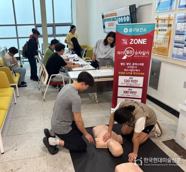 한국현대미술신문 박재남 기자 | 인천중구시설관리공단과 중구보건소는 지난 9월 17일과 9월 24일 영종국민체육센터에서 ‘심뇌혈관질환 예방 관리 및 건강 증진을 위한 합동 캠페인’을 진행했다.