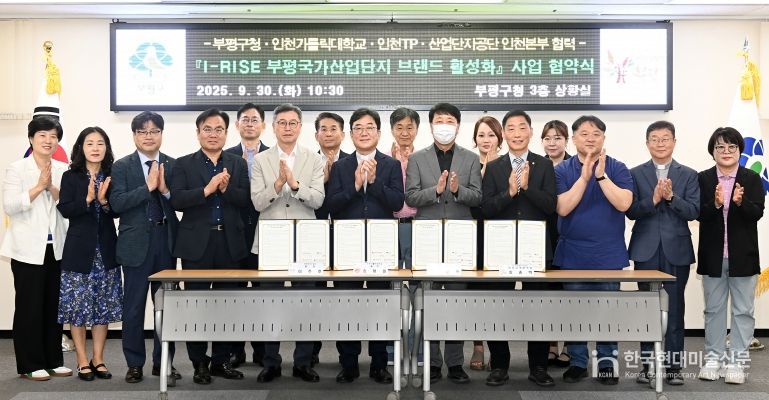 한국현대미술신문 박재남 기자 | 부평구는 지난 30일 구청 상황실에서 인천가톨릭대학교 ·인천테크노파크·한국산업단지공단과 함께 ‘I-RISE 부평국가산업단지 브랜드 활성화 사업’ 협약을 체결했다.